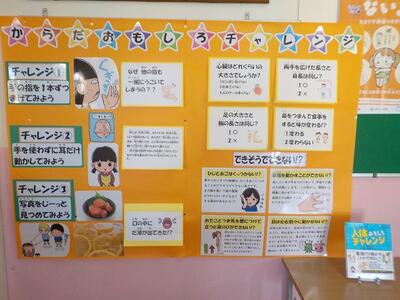 最後に今月の生活目標について、保健委員会がクイズを交え分かり易く説明、発表をしてくれました。「寒さに負けずに外遊びをしよう!!」と呼びかけました。