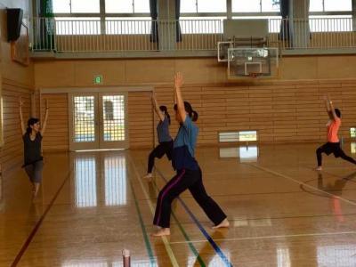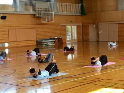 10月12日(木)に小谷小学校体育館にて家庭教育学級が行われ、ピラティスを体験しました。
